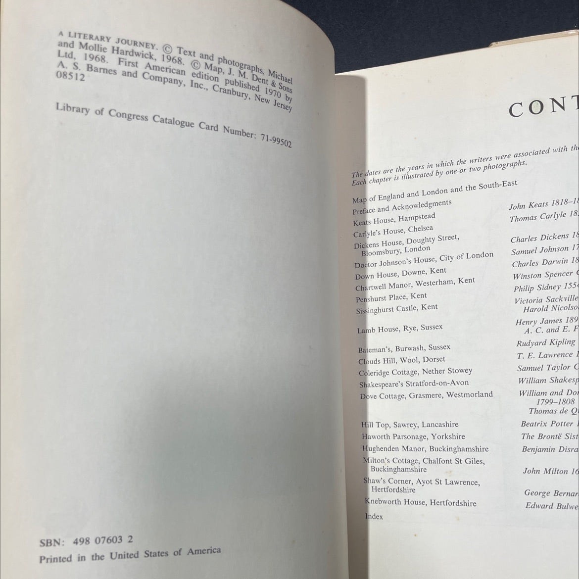 Rare collectible book priced at $19.99, 'a literary journey visits to the homes of great writers' by michael and mollie hardwick, unknown,unknown sold by Black Octopus Books. This book features a Hardcover binding, and was published in 1970 by A. S. Barnes and Company. The photos are of the EXACT copy of the book you will receive, condition and all. Here's a list of all the book stats!