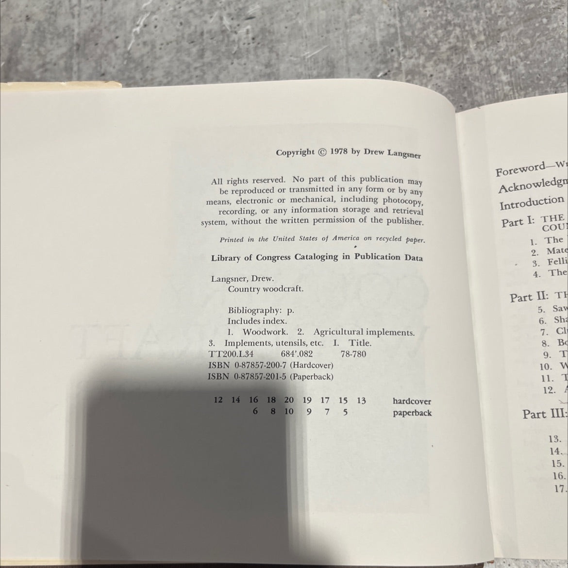 Rare collectible book priced at $35, 'country woodcraft' by drew langsner, unknown printing,unknown sold by Black Octopus Books. This book features a Hardcover binding, and was published in 1978 by rodale press. The photos are of the EXACT copy of the book you will receive, condition and all. Here's a list of all the book stats!