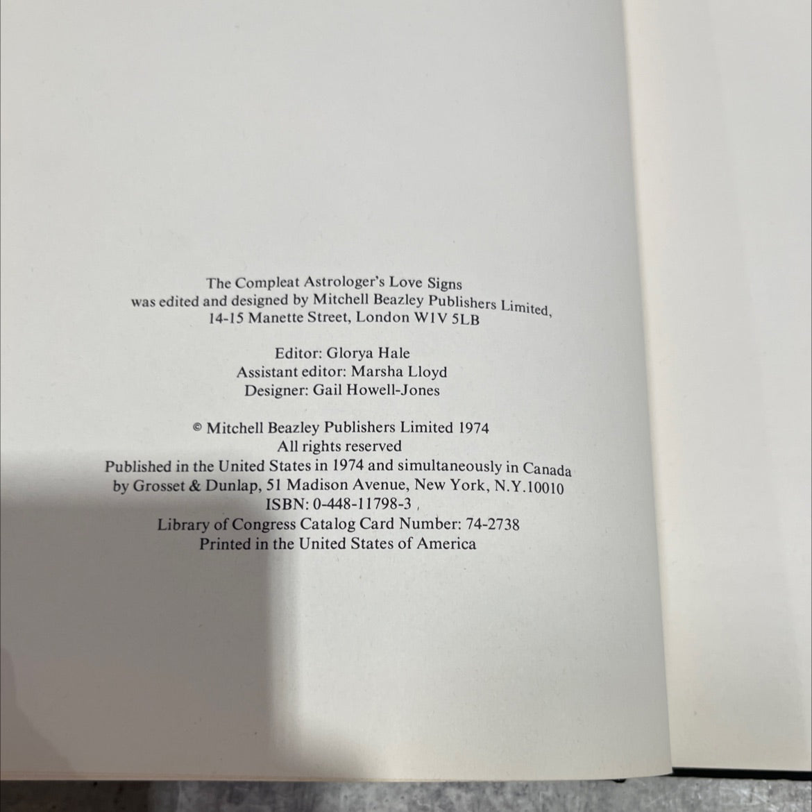 Rare collectible book priced at $35, 'the compleat astrologer's love signs' by Derek & Julia Parker, unknown,unknown sold by Black Octopus Books. This book features a Hardcover binding, and was published in 1974 by Grosset & Dunlap. The photos are of the EXACT copy of the book you will receive, condition and all. Here's a list of all the book stats!