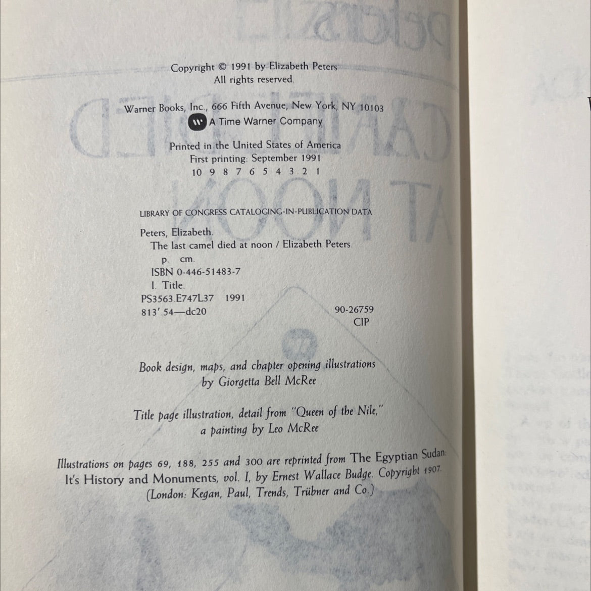 Rare collectible book priced at $35, 'the last camel died at noon' by Elizabeth Peters, First Printing,unknown sold by Black Octopus Books. This book features a Hardcover binding, and was published in 1991 by Warner Books. The photos are of the EXACT copy of the book you will receive, condition and all. Here's a list of all the book stats!