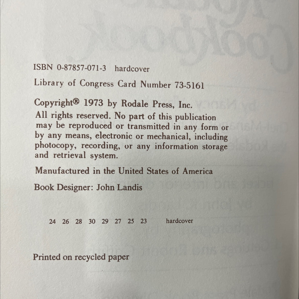 Rare collectible book priced at $35, 'the rodale cookbook' by Nancy Albright, First Printing,unknown sold by Black Octopus Books. This book features a Hardcover binding, and was published in 1973 by Rodale Press. The photos are of the EXACT copy of the book you will receive, condition and all. Here's a list of all the book stats!
