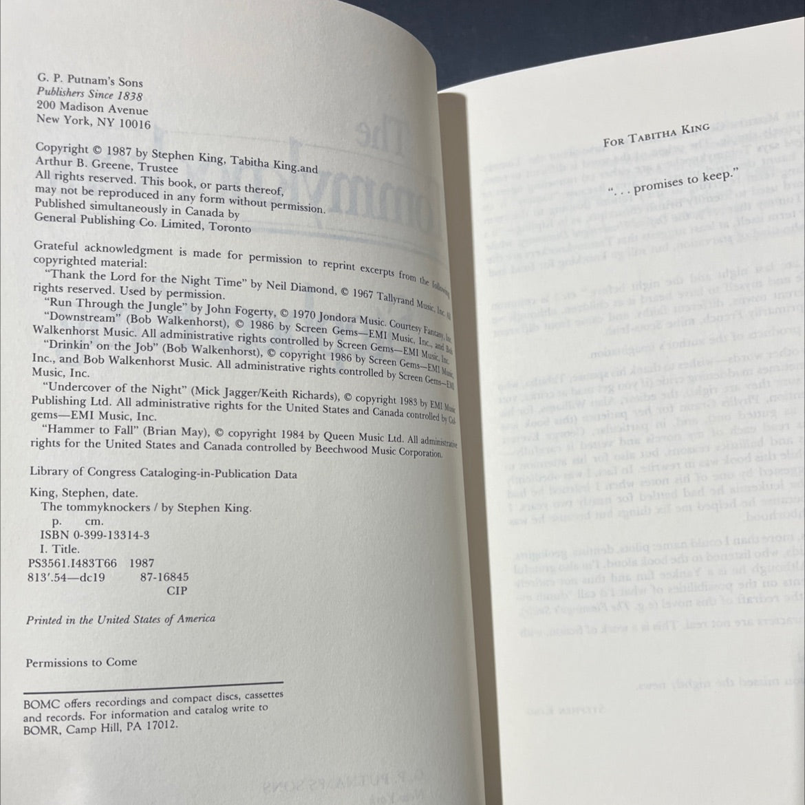 Rare collectible book priced at $35, 'the tommyknockers' by Stephen King, unknown,unknown sold by Black Octopus Books. This book features a Hardcover binding, and was published in 1987 by G. P. Putnam's Sons. The photos are of the EXACT copy of the book you will receive, condition and all. Here's a list of all the book stats!
